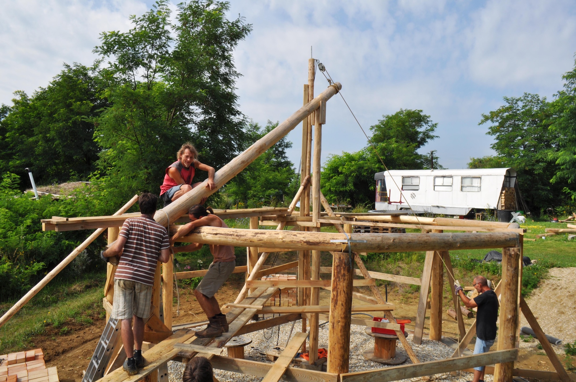 Die britischen Pioniere Simon Dale und Tony Wrench, und deren selbst geschaffene Lehmhäuser mit reziproken Dächern zeigten mir erstmals was jenseits der ISO-zertifizeriten Norm möglich ist